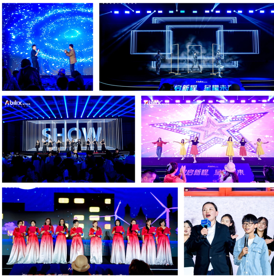 舞蹈《AI时空之门》通过时空之门与舞者共同演绎,展现科技与生命的和谐共舞;走秀《AI纪元秀》以时尚潮流的形式,展现科技与设计的融合,传递未来生活的美学理念;诗朗诵《相信未来 星耀AI》以深情语言讲述AI时代的教育愿景,传递能力风暴“以科技陪伴成长”的信念;歌曲演唱等节目:通过音乐与情感的交织,营造温暖而富有共鸣的现场氛围。